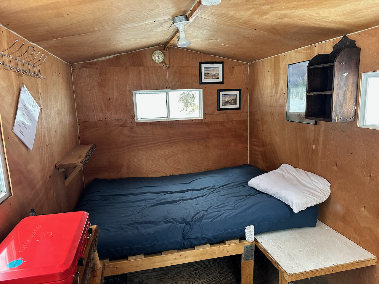 You will need to bring warm winter coat and pants, winter boots, fishing gear (ask us about rental gear), food and water, disposable plates and cups, garbage bags for cleaning up (you must take all garbage and waste with you), live bait/minnows and your FISHING LICENSE. If you plan on staying overnight then you will need a sleeping bag and blankets.
