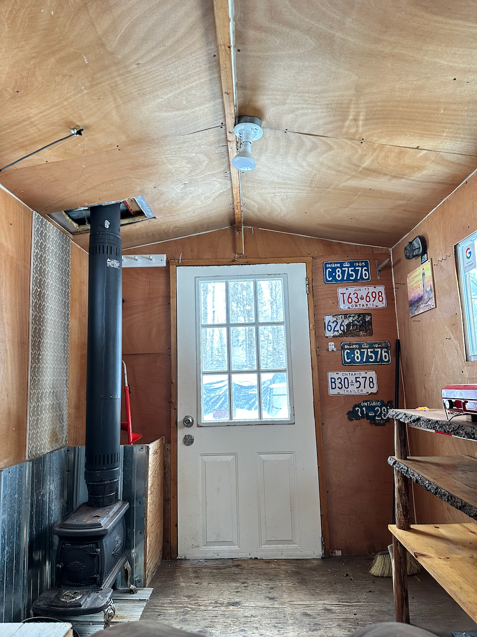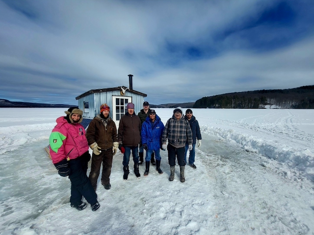Northern Ice-Fishing Adventure’s hut is located on Benoir lake in Harcourt ON. 28km west of Bancroft and 17km from Wilberforce (smaller town with grocery store and a restaurant).