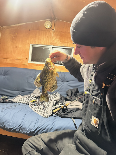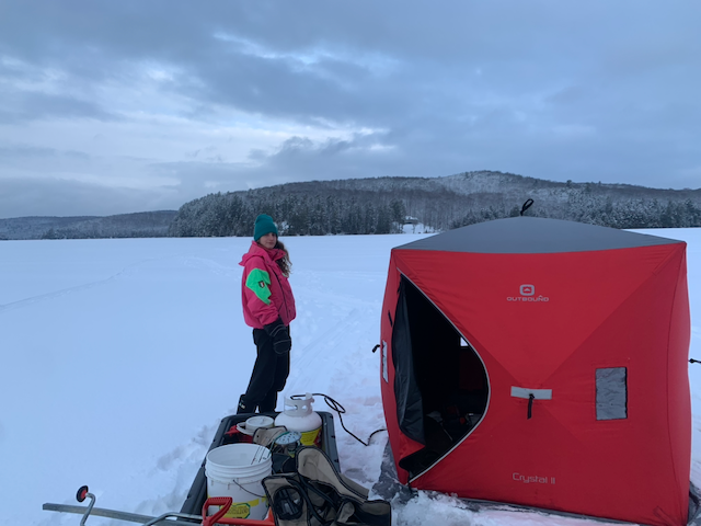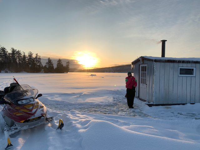We have cabins for rent and included is a sleigh with a 6 man popup ice hut, buddy heater with a 20lb propane tank and an ice auger!! We will also point you in the right direction to one of the countless lakes in the area for the fish you are looking for!